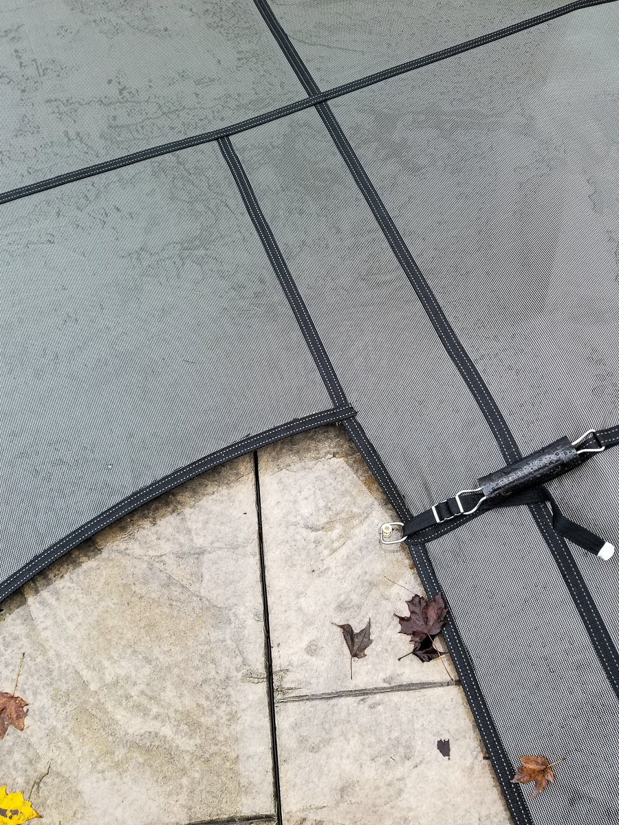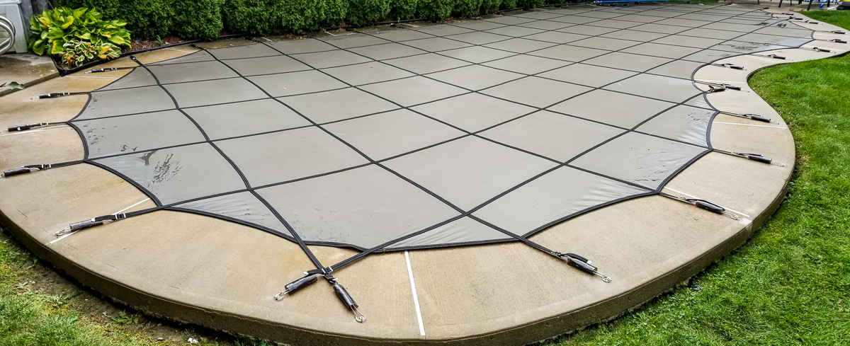 PSP Fabricating safety covers are made in Canada and use quality materials: heavy-duty commercial-grade springs and hardware, and use a 3’x3′ grid construction with heavy, dense weave material. We are able to design and manufacture a cover for almost any shaped pool with various border features.