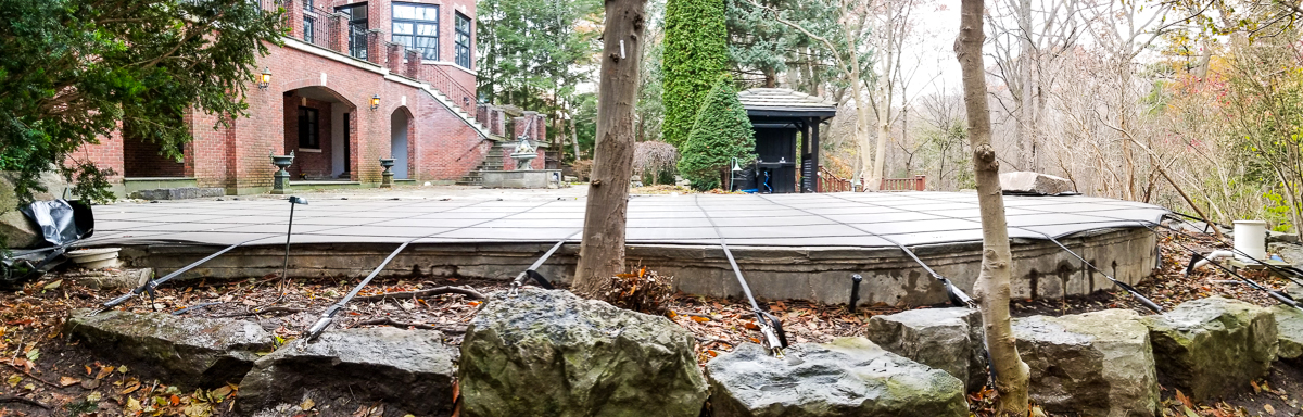 Far superior to traditional water bag winter covers, safety covers from PSP Fabricating safety covers are made in Canada and use quality materials: heavy-duty commercial-grade springs and hardware plus, a 3’x3′ grid construction with heavy, dense weave material. We are able to design and manufacture a cover for almost any shaped pool with various border features.